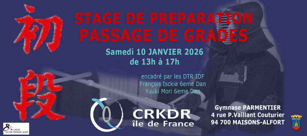 Suite au dernier passage de grade et le constat fait, la CRKDR IDF sous l’impulsion de ses D.T.R. François ISCKIA et Yuuki MORI vous propose de participer à un stage de préparation pour le passage de grade de 1er et 2e dan qui se tiendra le 17 janvier dans le cadre du championnat IDF ou plus tard..